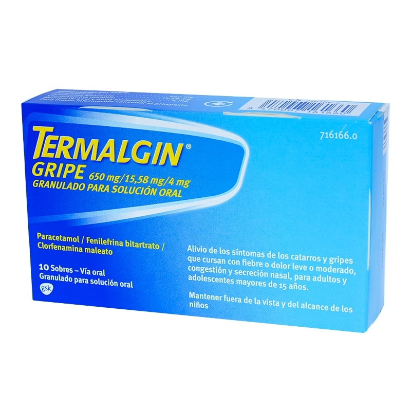 - Tratamiento sintomático de [RESFRIADO COMUN] o [GRIPE] que cursen con dolor leve o moderado, fiebre, congestión y secreción nasal en adultos y adolescentes a partir de 15 años.