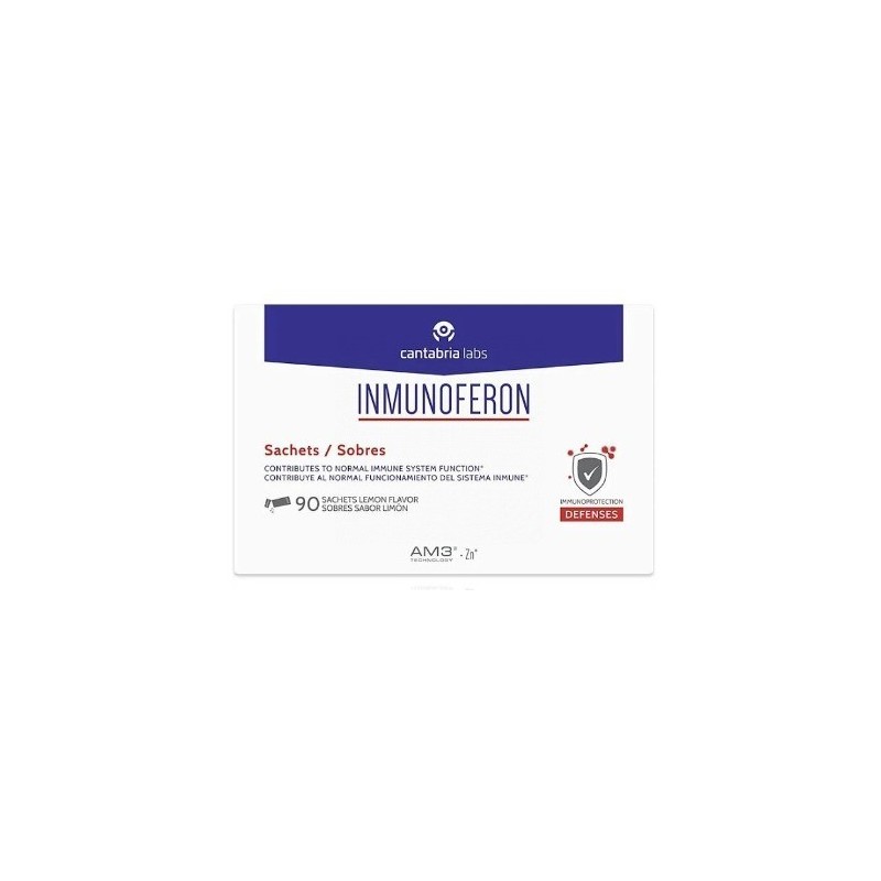 INMUNOFERON ES UN COMPLEMENTO ALIMENTICIO CON UNA FÓRMULA EXCLUSIVA A BASE DE AM3® (ALFA GLUCOMANANO FOSFORILADO Y PROTEÍNA DE SOJA), TECNOLOGÍA PATENTADA POR CANTABRIA LABS, Y ZINC, INGREDIENTE QUE CONTRIBUYE AL NORMAL FUNCIONAMIENTO DEL SISTEMA INMUNE.CADA LOTE DE INMUNOFERON CÁPSULAS ES VERIFICADO POR MEDIO DEL PROGRAMA INFORMED SPORT EN RELACIÓN A SUSTANCIAS PROHIBIDAS PARA DEPORTISTAS. LOS PRODUCTOS SE SOMETEN A UNOS RIGUROSOS TEST MEDIANTE MÉTODOS ACREDITADOS POR LA ISO 17025 PARA PROPORCIONAR EL MÁXIMO NIVEL DE SEGURIDAD PARA LOS DEPORTISTAS. PARA MÁS INFORMACIÓN ACERCA DE LOS PROCESOS DE TESTEO, POR FAVOR VISITE INFORMED-SPORT. COM.MODO DE EMPLEOADULTOS: 2 CÁPSULAS O 2 SOBRES UNA VEZ AL DÍANIÑOS: 1 CÁPSULA O 1 SOBRE UNA VEZ AL DÍACOMPOSICIÓNPOR CÁPSULA O SOBRE:30 MG AM3®3 MG ZINC